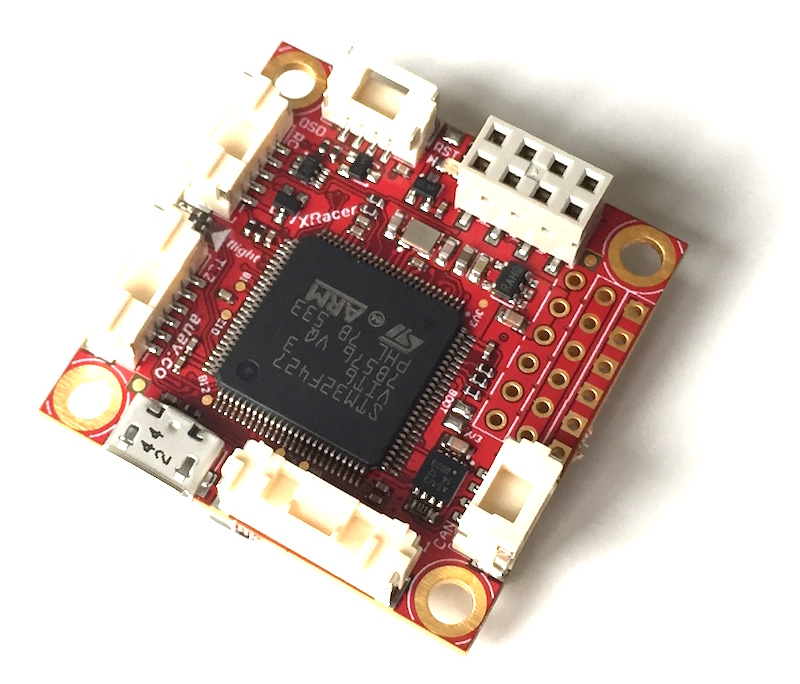 The Pixhawk XRacer board family is optimized for small racing quads and planes. In contrast to Pixfalcon and Pixhawk it has in-built Wifi, new sensors, convenient full servo headers, CAN and supports 2M flash.